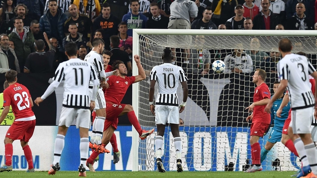 Morata headed an excellent Andrea Barzagli cross past the helpless Sergio Rico on 41 minutes, before substitute Zaza doubled Juve's lead with a late breakaway goal in the 87th minute.