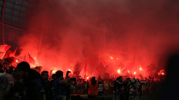 But things started to brighten up at the ‘Dublin Arena’ as the away end glowed in warming pyrotechnic amber, while that spine-tingling Champions League anthem teased the travelling Lilywhites of what might be on the horizon.
