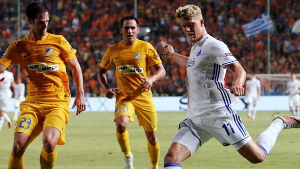In the night's other play-off clash, FC Copenhagen needed a late goal to edge past Cypriots Apoel Nicosia.