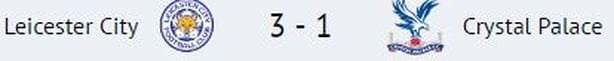 Champions Leicester City left striker Jamie Vardy on the bench but capped a fine week with a third home league win of the season, beating Crystal Palace 3-1 thanks to goals by Ahmed Musa, Shinji Okazaki and Christian Fuchs.