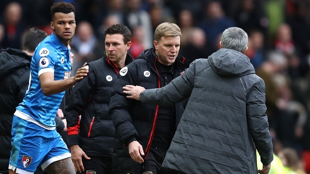 That prompted Bournemouth's Andrew Surman to push United's 35-year-old striker over, earning him a second caution of the afternoon, though referee Friend did not brandish a card at either Ibrahimovic or Mings.