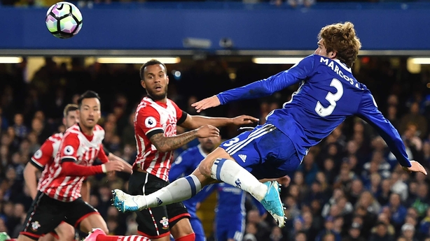 Chelsea took a half-time lead when Saints failed to clear. Kante returned the ball towards Marcos Alonso who headed back across goal and Cahill rose above Costa's acrobatics to head in.