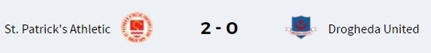 St Patrick’s Athletic: Conor O’Malley; Michael Barker, Gavin Peers, Rory Feely, Ian Bermingham; Lee Desmond, Graham Kelly (Patrick Cregg 79); Conan Byrne (Alex O’Hanlon 40), Darragh Markey, Kurtis Byrne; Christy Fagan (Billy Dennehy 86).