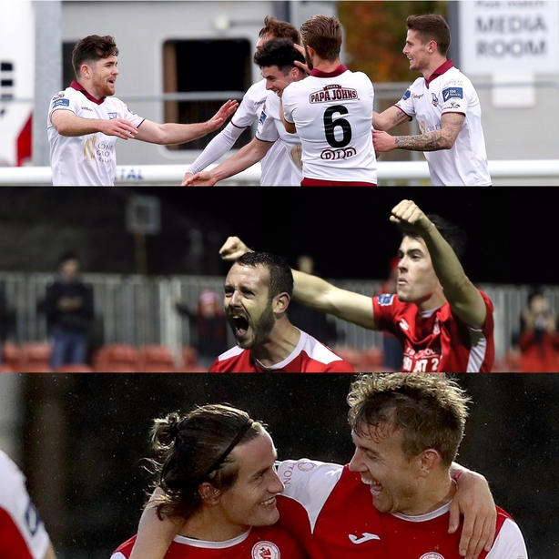 Galway United are the favourites to join them but a win over Dundalk could put Sligo Rovers and St Patrick’s Athletic in jeopardy.