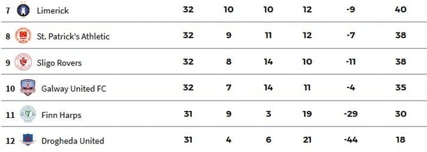 Will be safe if they secure a point against Derry City, The Saints could stay up with a defeat if Galway United drop points against Dundalk, or Sligo Rovers lose to Drogheda. Pat’s have a four-goal advantage over Sligo.