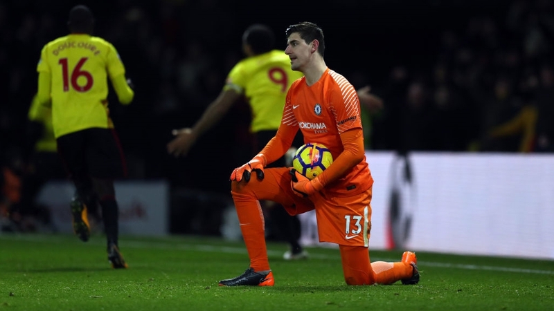 It continued to go from bad to worse for the Italian as Dean awarded a penalty to the hosts when Courtois burst from his line to close down the onrushing Deulofeu, with the Barcelona loanee going down under minimal contact.