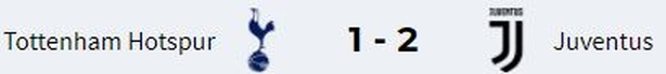 A stunned Tottenham responded with Kane, who hit the post with a header that bounced up off the turf, Christian Eriksen and Son all going close for the hosts but Juve's vast European experience saw them home.
