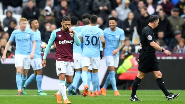 They should have been awarded a penalty when Ilkay Gundogan up-ended Edimilson Fernandes on the corner of the area but Swarbrick gave a free-kick instead.