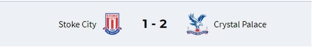 But after they took the lead through Xherdan Shaqiri's 43rd-minute free-kick, things then turned around in the second half, with James McArthur equalising in the 68th minute and Patrick van Aanholt netting the winner for Palace in the 86th.
