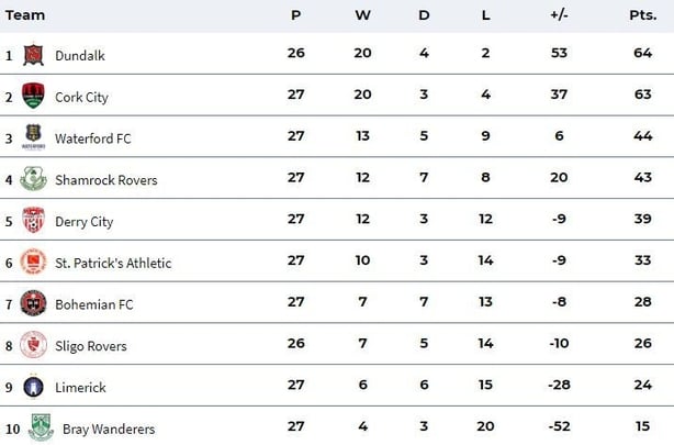 The Blues have been beaten in their last two league outings, against Shamrock Rovers (1-0 at home) and Limerick (2-1 away), and are just a point clear of Rovers in the final Europa League spot.