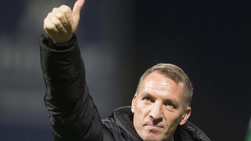 Brendan Rodgers chalked up his 100th win as Celtic boss with a 5-0 Ladbrokes Premiership demolition of Dundee at Dens Park.