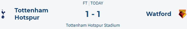 Tottenham are seventh in the Premier League standings on 12 points after nine games. Watford remained bottom on four points.