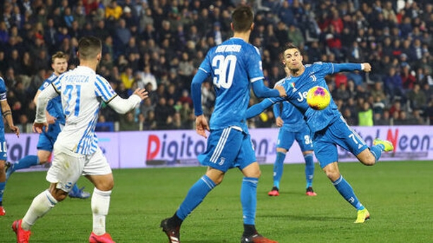 Cristiano Ronaldo marked his 1,000th career appearance with a goal as Juventus moved to the top of Serie A after scraping to a 2-1 victory over basement club SPAL.