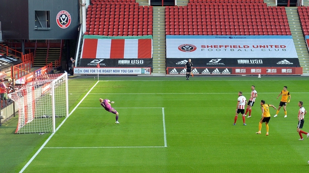 Shortly afterwards, again down the Wolves right, Lundstram linked up with John Fleck who saw his shot strike the foot of the far post, before George Baldock’s follow-up was deflected wide.