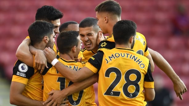 The first goal came in the third minute when Daniel Podence skipped away from John Lundstram’s sliding challenge wide on the left. His low cross into the penalty area was expertly steered home by Raul Jimenez from 12 yards out. Romain Saiss headed in Pedro Neto’s corner for the second goal.