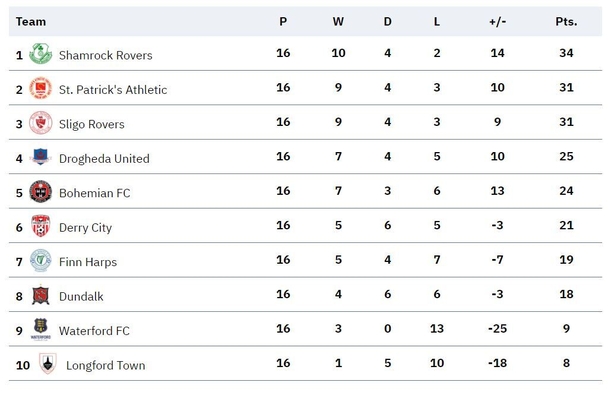 With Shamrock Rovers trailing to an early goal in Waterford, that left the Saints briefly top of the table, though normal service was soon restored at the RSC.
