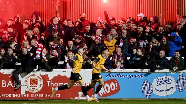 The Showgrounds erupted in the 95th minute as Lukas Browning capitalising on a weak clearance from Darragh Nugent, controlling the ball before drilling it low to the corner from the edge of the box.