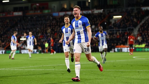 A week on from just his second Irish start in the 1-0 European qualifier defeat to France in Dublin, the 18-year-old gave the Seagulls a 28th-minute lead, backheeling the ball home from around eight yards out following Kaoru Mitoma’s low cross into the box for his fourth goal in 11 Premier League appearances this term.
