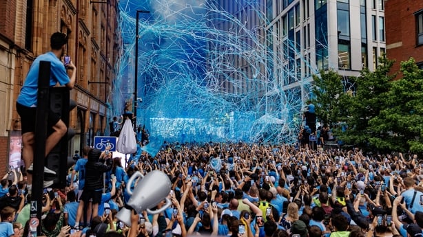 Thousands of fans had lined the streets to cheer on Pep Guardiola's squad who secured the Champions League trophy with victory over Inter Milan in Istanbul on Saturday night to add to the Premier League title and FA Cup.