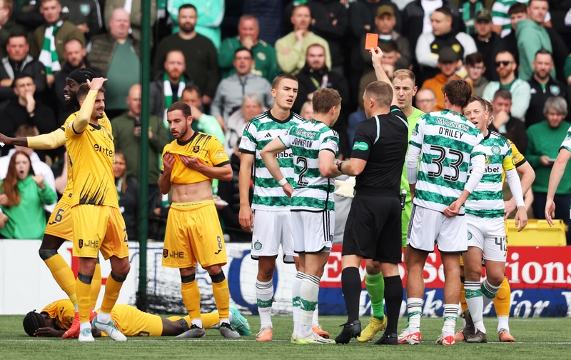 Beaton flashed a red card and VAR did not change the decision, reducing Celtic to 10 men for the remaining hour of the match. Forrest was sacrificed to allow Scott Bain to come on.