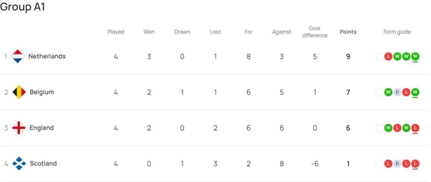 A win on 2 December over the Dutch would see them level on points, but Belgium could go top if they beat Scotland the same day. Four days later, while the Netherlands and Belgium do battle, England travel to face Scotland at Hampden Park.