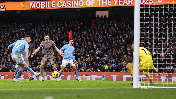 Tottenham contributed to their own downfall after giving away position and City passed their way through, with Foden finishing off following a neat turn and lay-off by Alvarez.