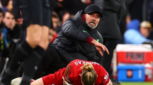 Liverpool soon had left-back problems of their own when Bukayo Saka pushed Kostas Tsimikas, deputising for the long-term injured Andy Robertson, into Klopp and while both took a tumble in the technical area the Greek came off worse as he departed with what appeared to be either a shoulder or collarbone injury.