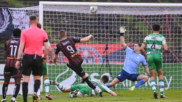Dalymount was rocking well before kick off and the game began amid a cloud of pyro infused smoke and perhaps it played a part in the opening 30 seconds as Aboubacar Keita's rash clearance fell to Kenny who should have scored.