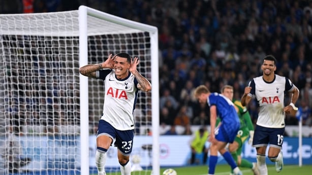Spurs were ahead at half-time thanks to Pedro Porro's 29th-minute header after a one-sided first 45 at King Power Stadium.