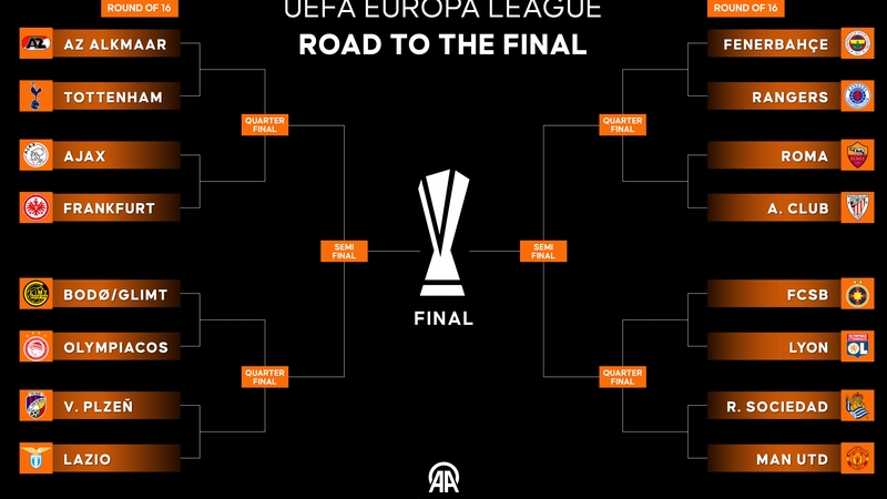 Should Rangers progress, they will face either Roma or Athletic Bilbao in the quarter-final, while United would line up against FCSB or Lyon and Spurs Ajax or Eintracht Frankfurt.