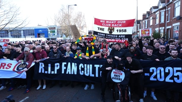 The pair were speaking at Broadhurst Park, where there were chants, flags and banners calling for the Glazers to leave outside the ground two hours before kick-off. Ratcliffe was also subject of some fan ire at a match that attracted a crowd of 2,357.